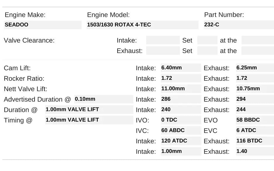Sea-Doo 1503 1630 Rotax 4-TEC Camshaft | 232-C